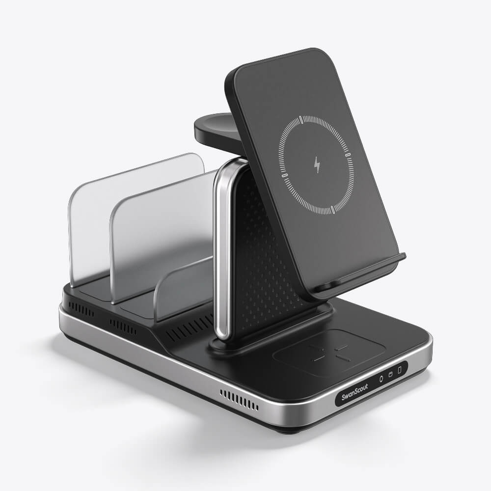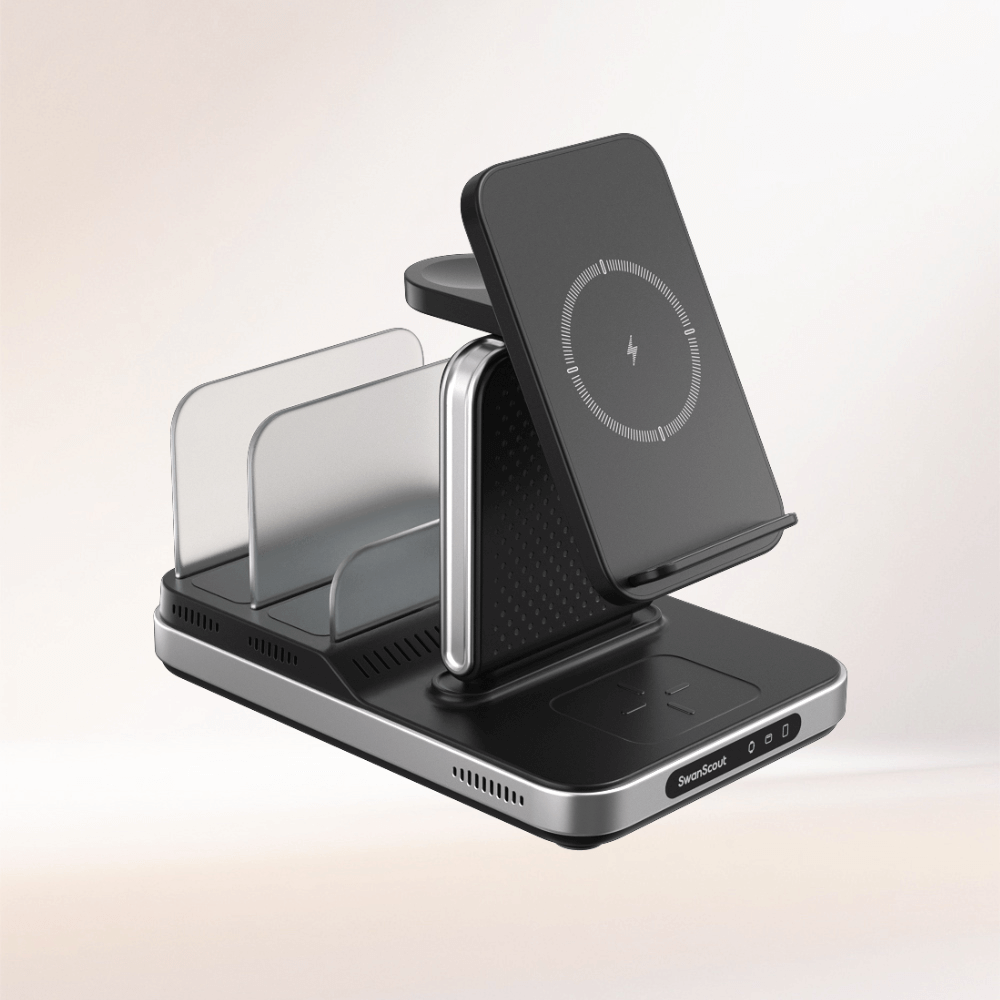 Зарядните устройства SwanScout за дома и офиса за Samsung предлагат интелигентно и опростено решение за зареждане за домакинствата. Компактната 3-в-1 станция, идеална за нощни шкафчета или повърхности в хола, захранва ефективно Galaxy S25, Galaxy Watch 8 и Galaxy Buds 3. Прецизната технология за безжично зареждане поддържа серията Galaxy S20-S25, с дизайн с ниско излъчване и регулируеми LED индикатори, осигуряващи безопасност и комфорт през нощта, перфектно съобразени с нуждите на съвременния дом.