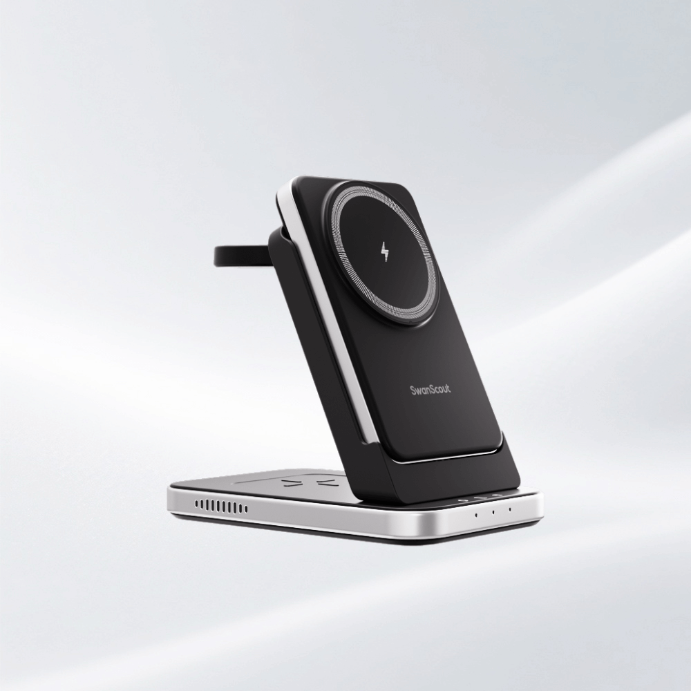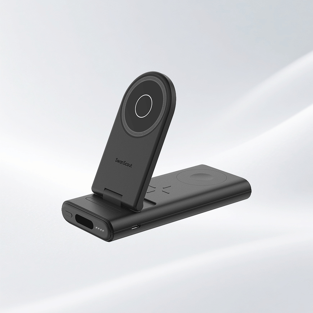SwanScout 301M is a 3-in-1 foldable magnetic power bank, designed for seamless charging with MagSafe-compatible devices.The SwanScout 301M is an innovative apple watch power bank, offering wireless charging for your watch, phone, and earbuds.