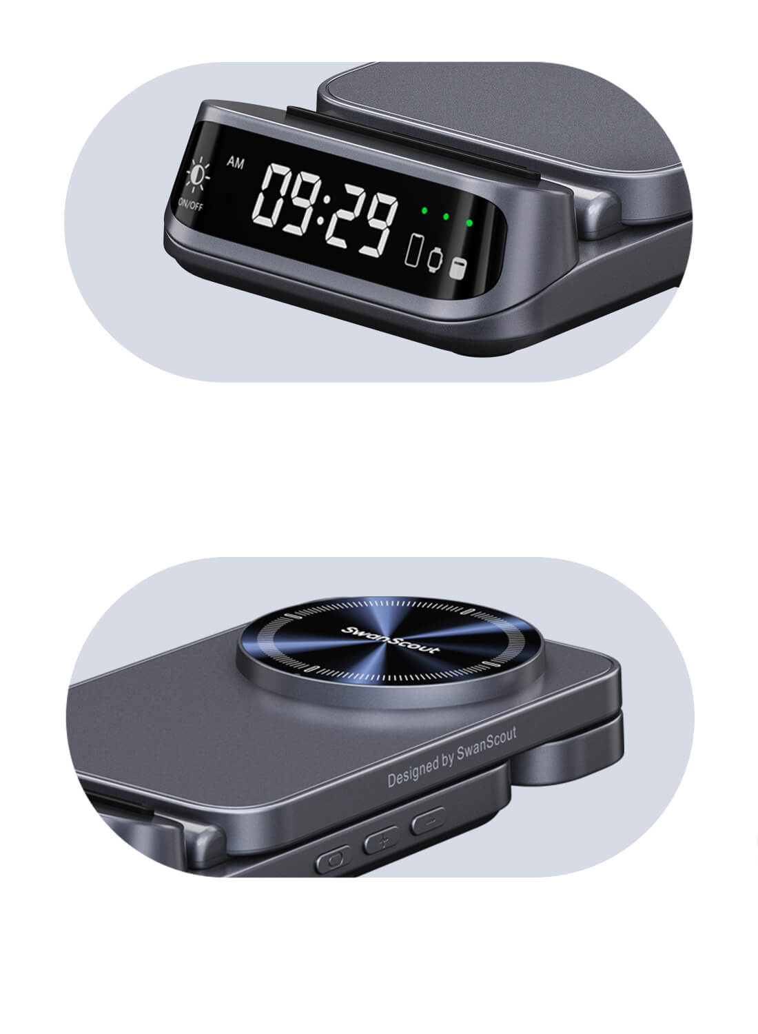 The swanscout 708M provides a solid base for your devices, functioning as a stable iPhone watch charger station.