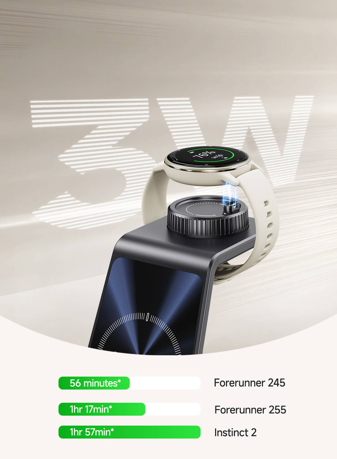 • 3-in-1 kabelloses Ladegerät: Lädt gleichzeitig eine Garmin-Uhr, ein kabellos aufladbares Handy und ein Paar kabellose Kopfhörer mit Ladehüllen, wodurch Platz gespart wird.