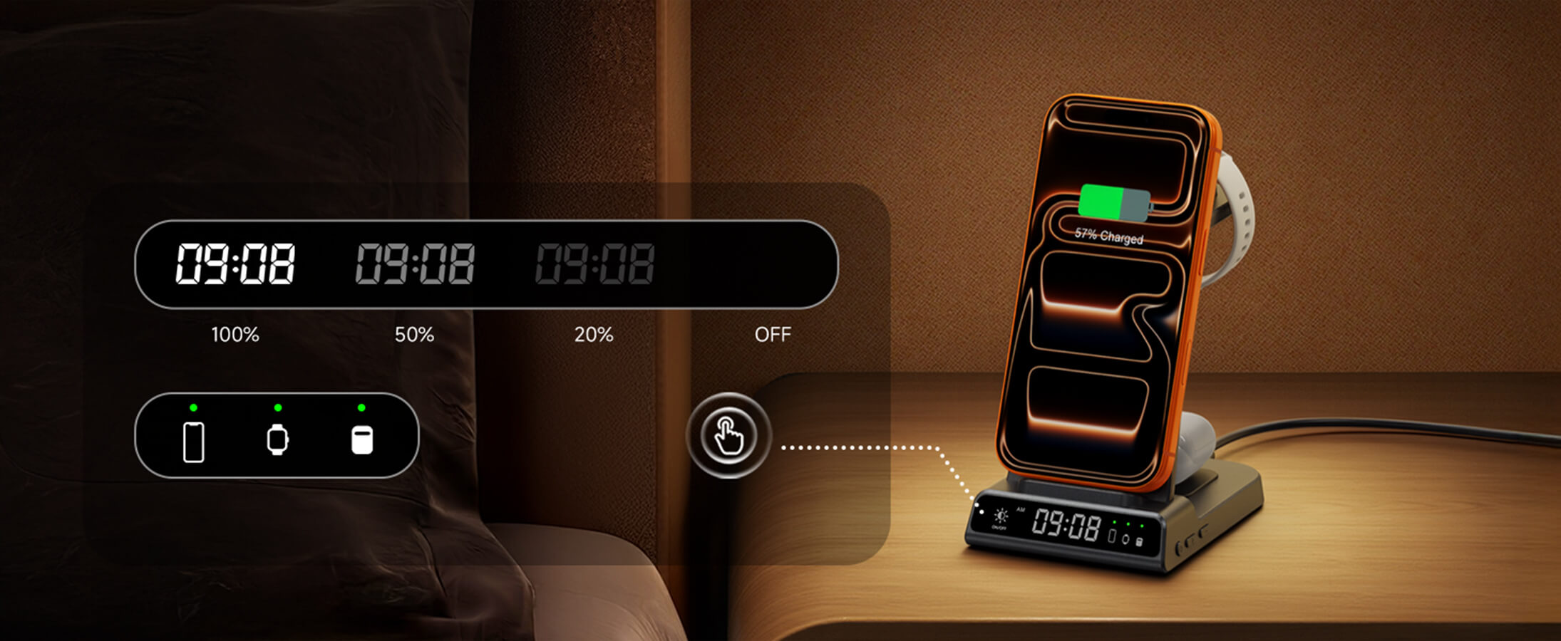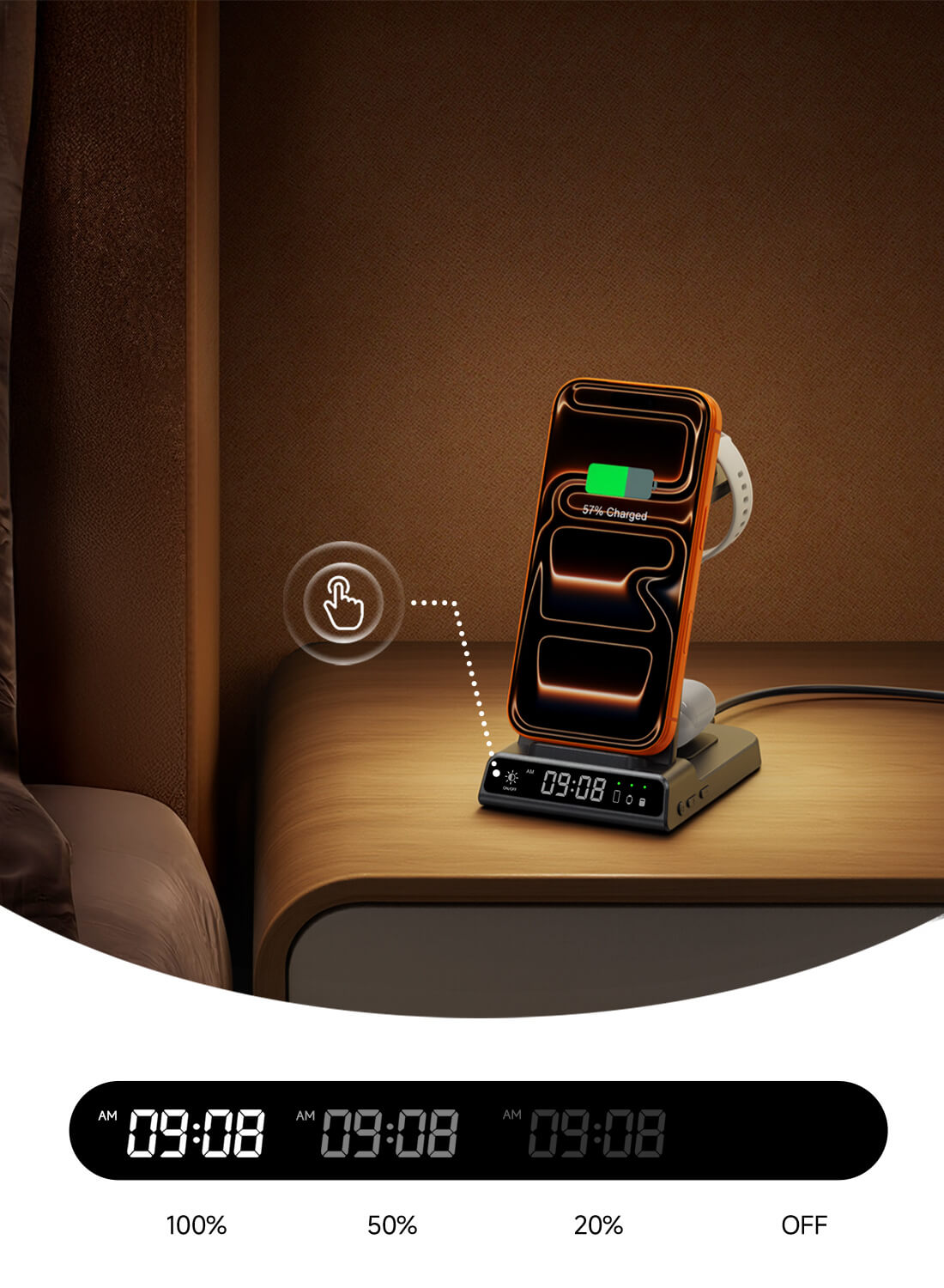 Uhr mit einstellbarer Helligkeit, perfekt für die Nachtanzeige, stellt sicher, dass Ihre Geräte jede Nacht vollständig geladen sind