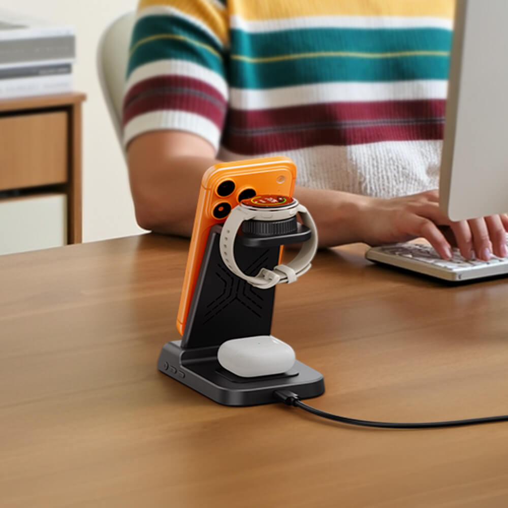 All-in-One-Lösung zum Laden von drei Geräten, hält den Arbeitsplatz sauber und effizient