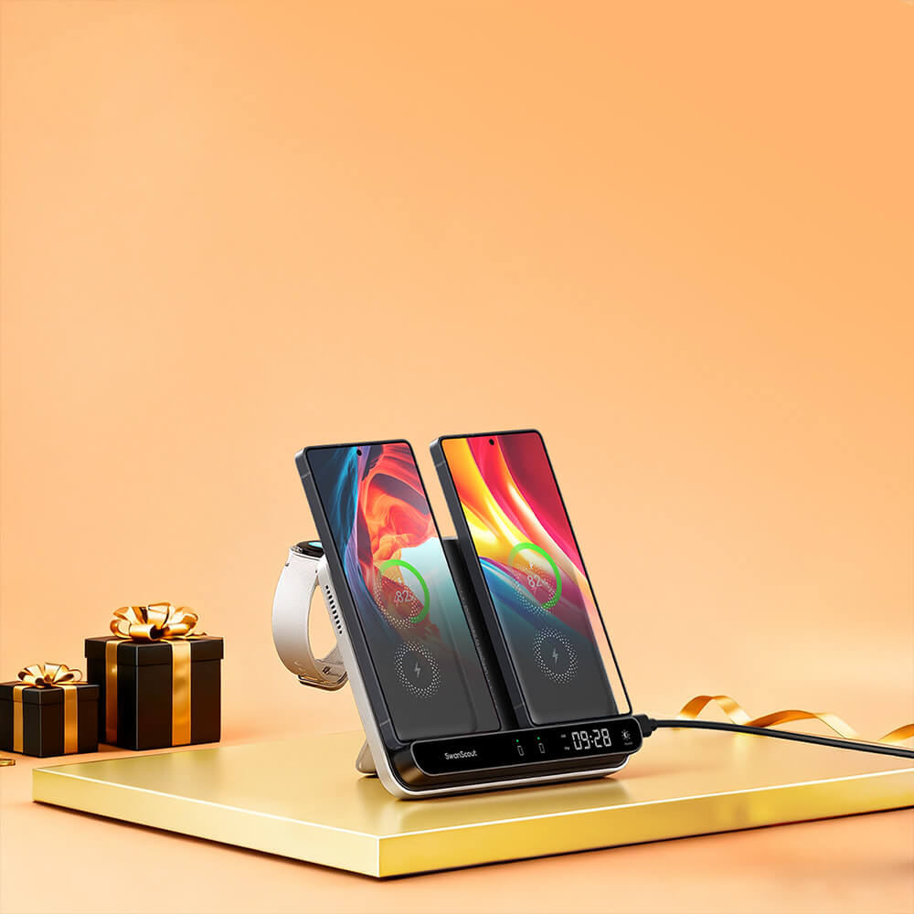 SwanScout 710S - Ασύρματος Φορτιστής για Δύο Τηλέφωνα και Ένα Ρολόι για Samsung
