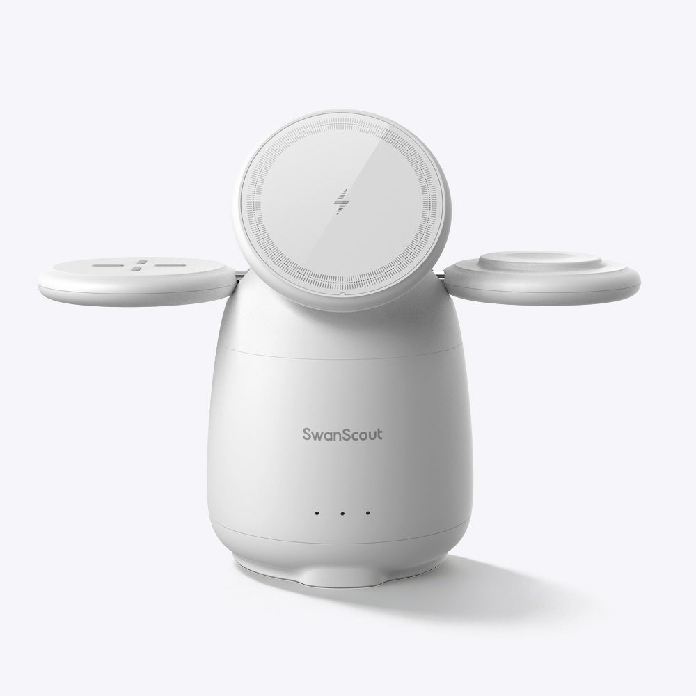 The SwanScout 705S is a streamlined Samsung charging station built for efficiency and elegance.Designed for versatility, the SwanScout 705S also functions as a dedicated Pixel charging station.