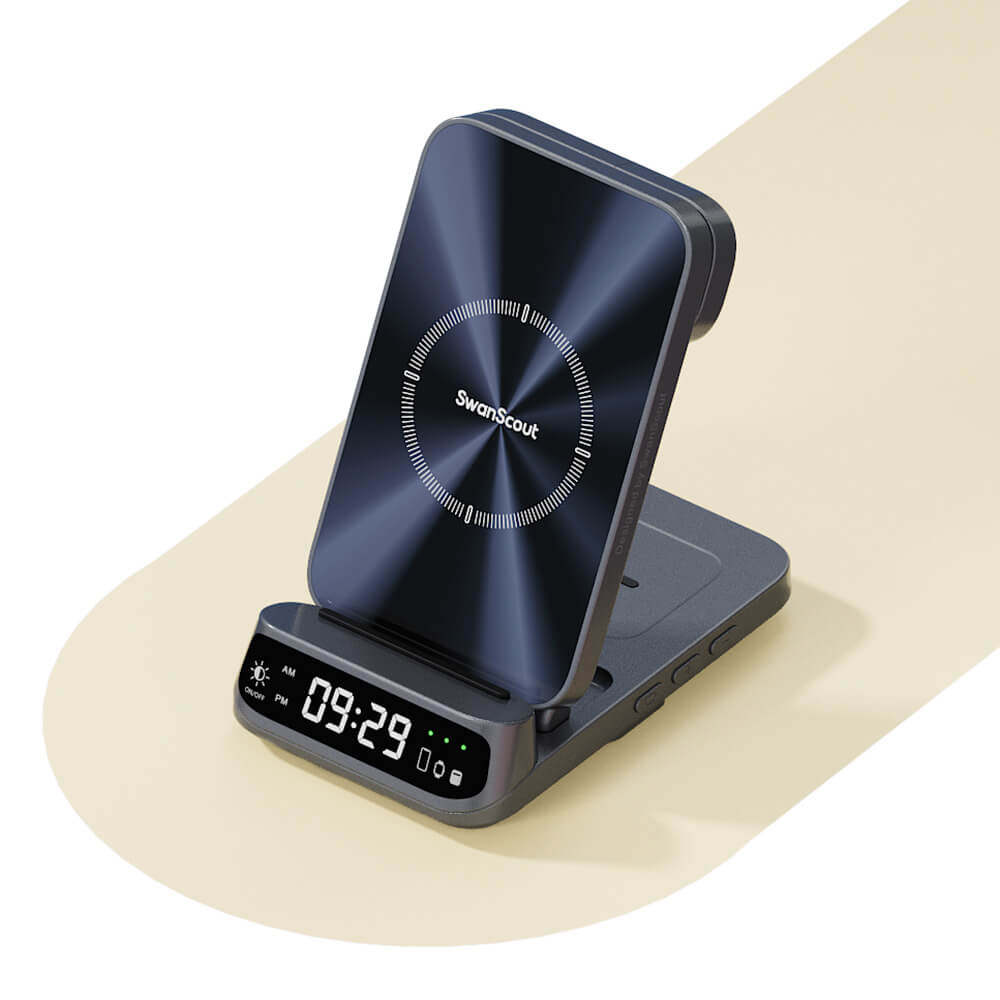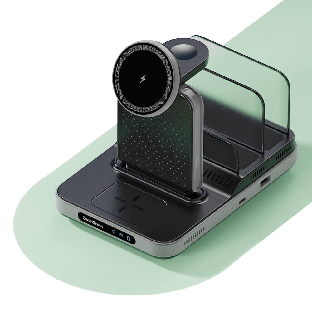 SwanScout 304M is a sleek iPhone charging station that simplifies power management for daily Apple device users.With iPhone wireless charger fast charging, the SwanScout 304M delivers quick, reliable energy without overheating.