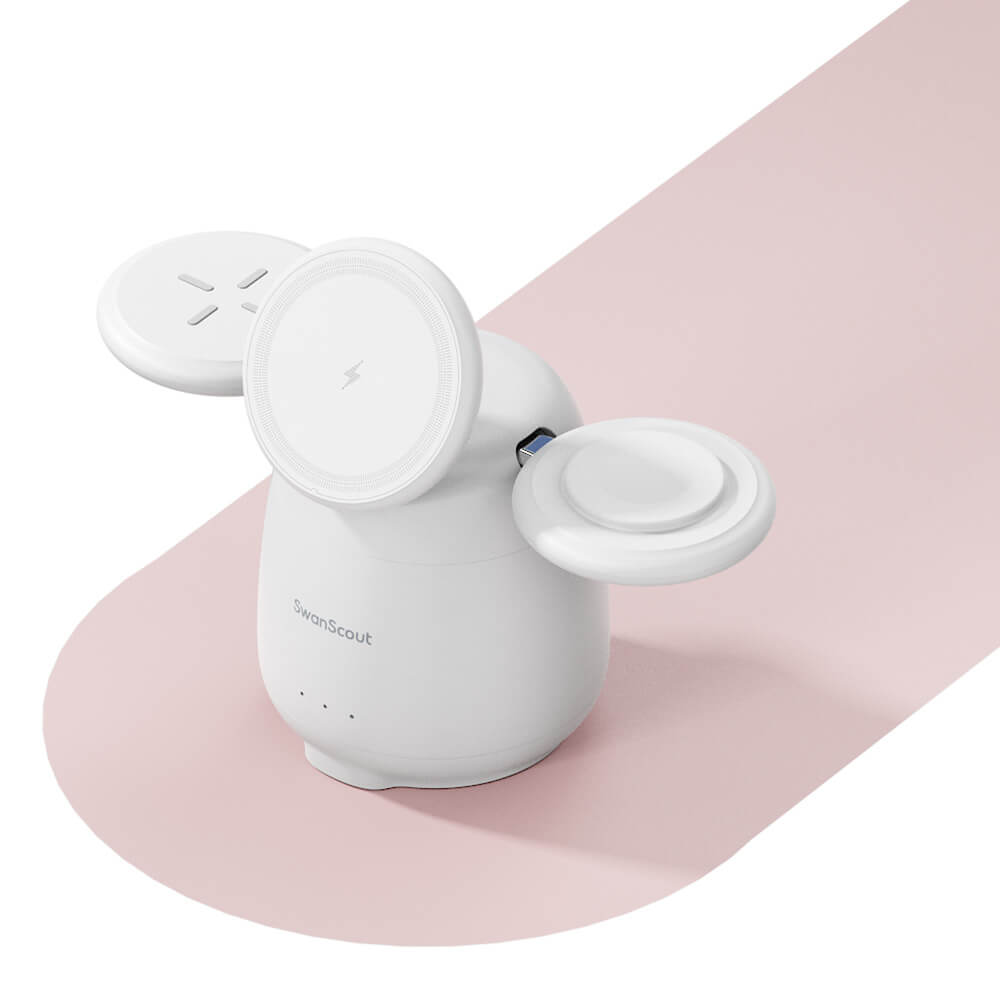SwanScout 711M offers seamless magnetic charging for AirPods Pro 2, keeping all your Apple gear powered in one elegant spot.Experience true iPhone charger fast charging with SwanScout 711M, designed to speed up your day without overheating or delays.