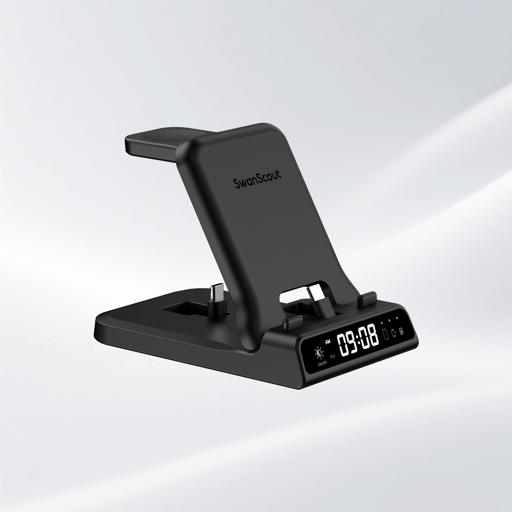 The Swanscout 701S is a sleek 3 in 1 charging station for Samsung devices, powering your phone, watch, and Galaxy Buds all at once.The Swanscout 701S is a wired 3 in 1 charging station for Samsung, offering fast and organized charging for your phone, watch, and earbuds.
