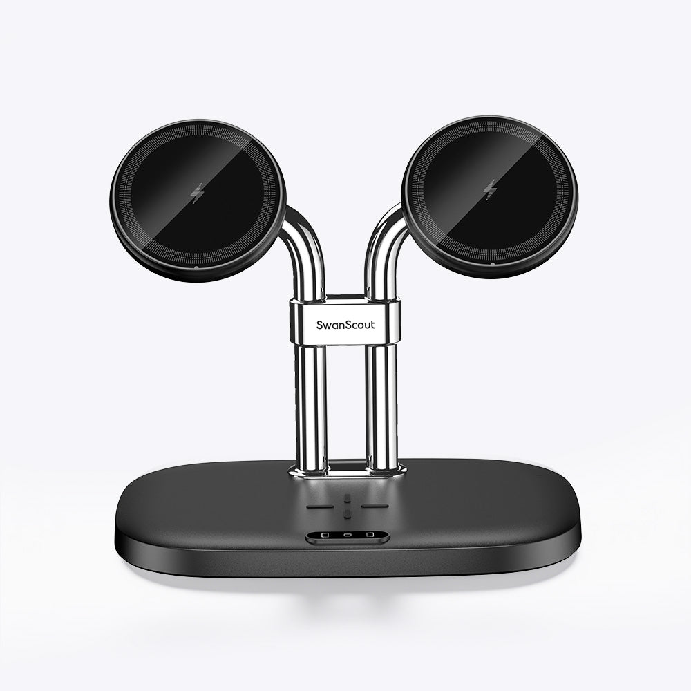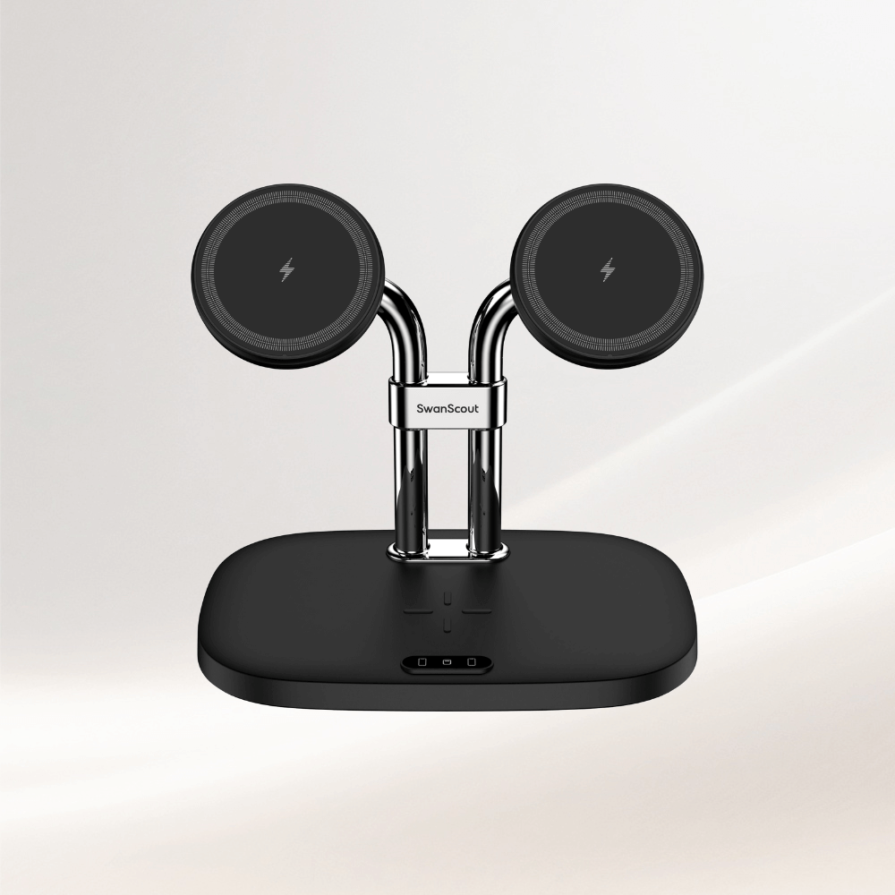 SwanScoutin Apple-yhteensopivat langattomat laturit on varustettu monikelaisella arkkitehtuurilla ja tarkalla kohdistuksella, jotka tukevat MagSafe-yhteensopivia iPhone-puhelimia, Apple Watch Series 10 -Ultra -kelloja ja Qi-yhteensopivia AirPods-kuulokkeita. Ne on suunniteltu samanaikaiseen lataamiseen optimoidulla virranjakelulla, joten ne poistavat kaapelisotkun ja ylläpitävät vakaata tehoa kaikissa laitteissa. Ne ovat ihanteellisia koti- ja toimistokäyttöön ja tarjoavat tehokkaan, järjestyksellisen virransyötön, joka on räätälöity Apple-ekosysteemiin.