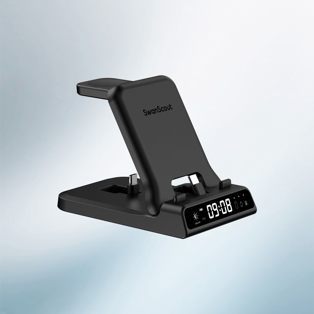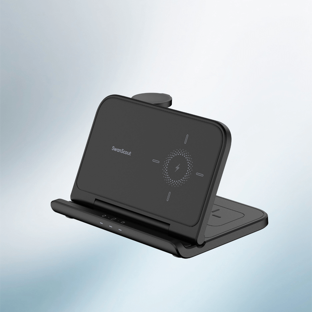 The Swanscout 701S is a sleek 3 in 1 charging station for Samsung devices, powering your phone, watch, and Galaxy Buds all at once.The Swanscout 701S is a wired 3 in 1 charging station for Samsung, offering fast and organized charging for your phone, watch, and earbuds.