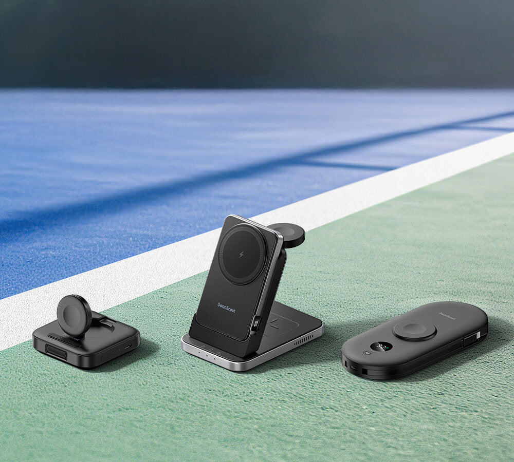 Ei. SwanScoutin langattomat varavirtalähteet on suunniteltu usean laitteen lataamiseen, mikä varmistaa, että sekä älypuhelin että älykello saavat vakaata virtaa samanaikaisesti.