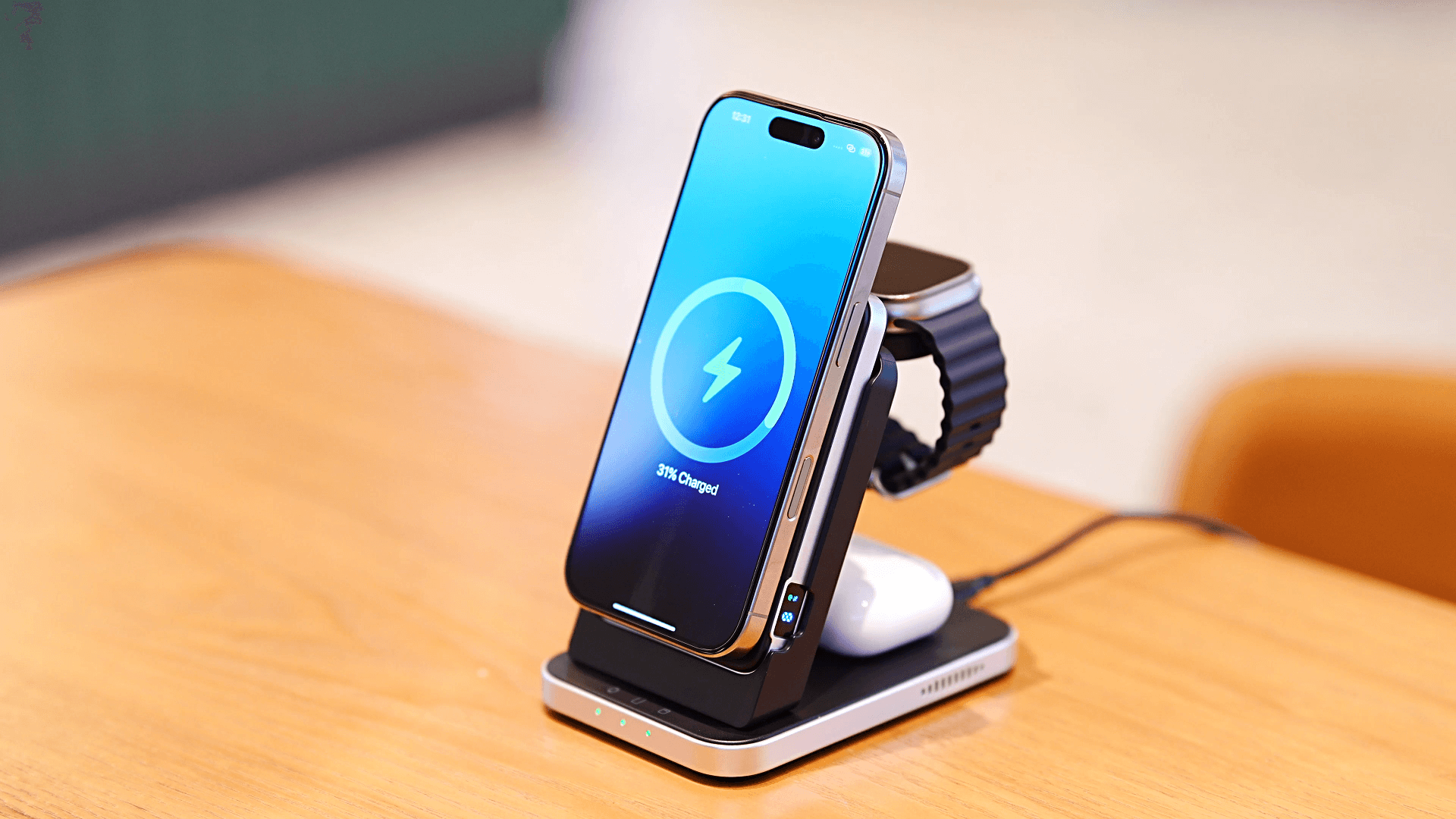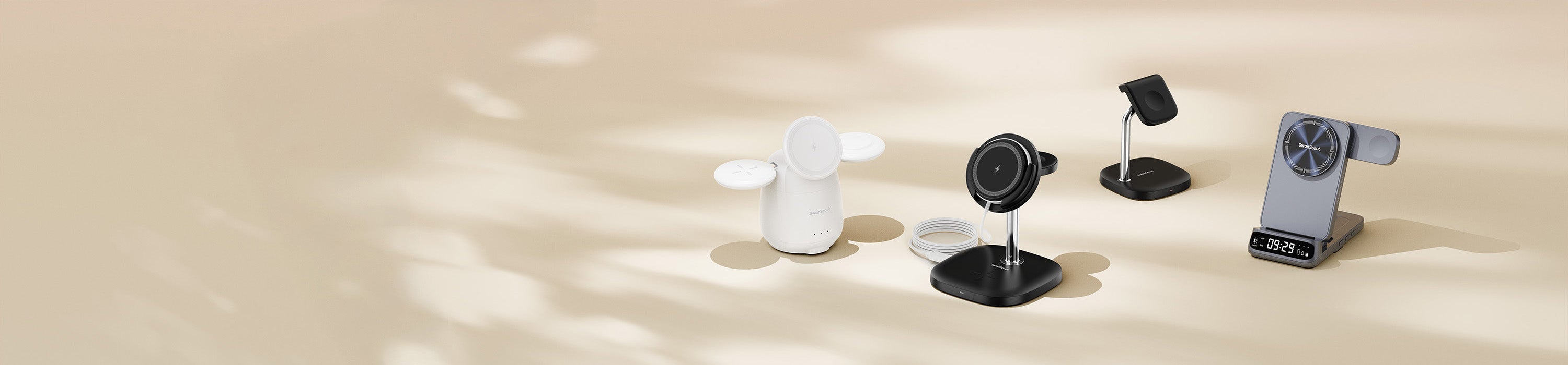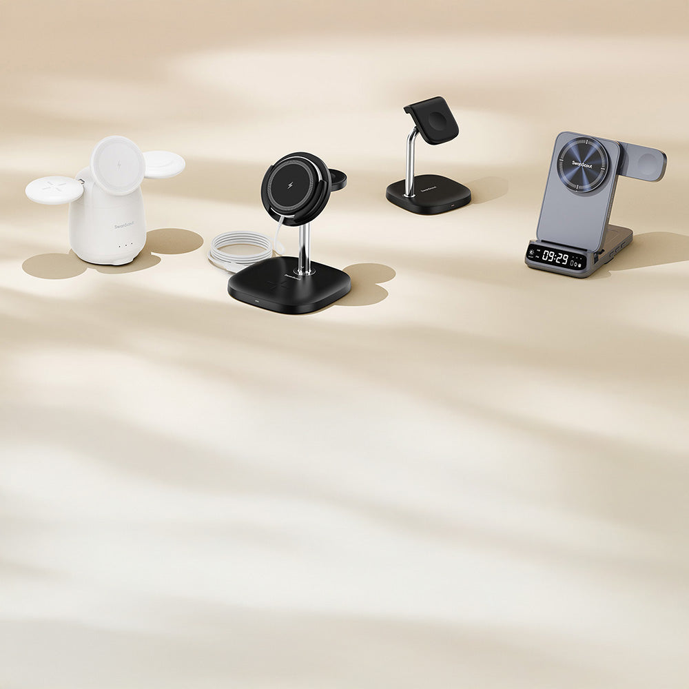 The swanscout 707M keeps the iPhone 12 Mini, Apple Watch SE, and AirPods 2 powered in one elegant station.