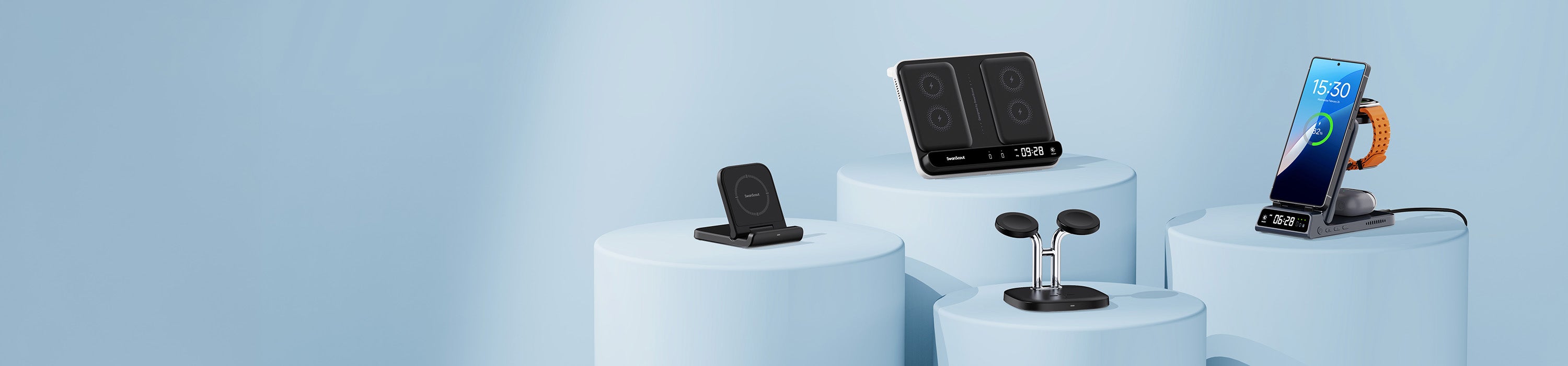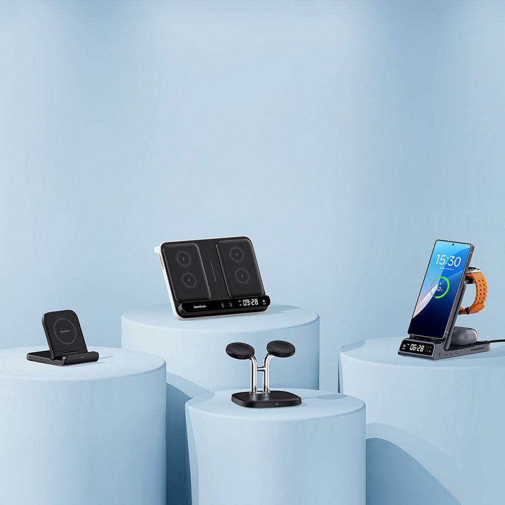SwanScout은 삼성 사용자 맞춤형 무선 충전기를 다양하게 제공합니다. 개인용 3-in-1 소형 제품부터 가정용 듀얼 폰 및 듀얼 워치 모델까지 다양합니다. 개인 및 공유 환경에 맞게 설계된 이 충전기는 여러 기기를 동시에 충전할 수 있어 대기 시간을 최소화하고 효율성을 극대화합니다.