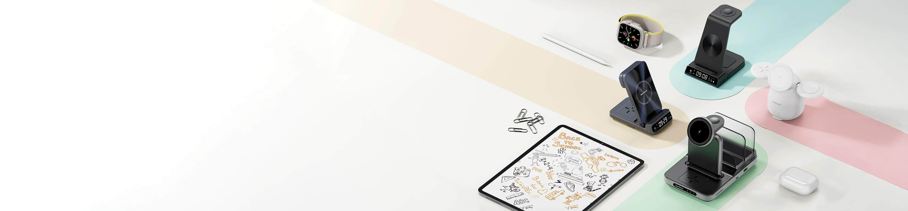 As mesas são muitas vezes apertadas e vários carregadores com cabos só aumentam a confusão e o estresse. Os carregadores sem fio 3 em 1 e duplos da SwanScout reúnem todos os seus dispositivos em uma solução compacta e organizada, ajudando a manter seu espaço de estudo arrumado, eficiente e pronto para o foco.