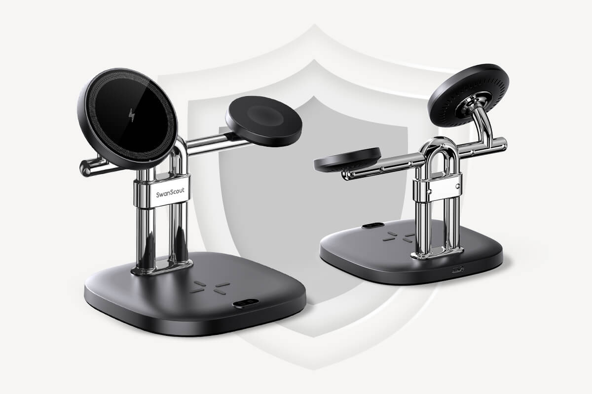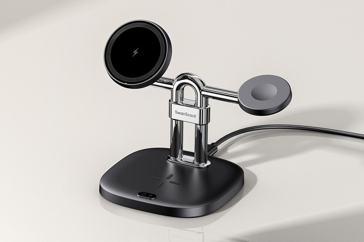 SwanScout 712M - Estação de Carregamento Sem Fios Magnética 3 em 1 para Apple