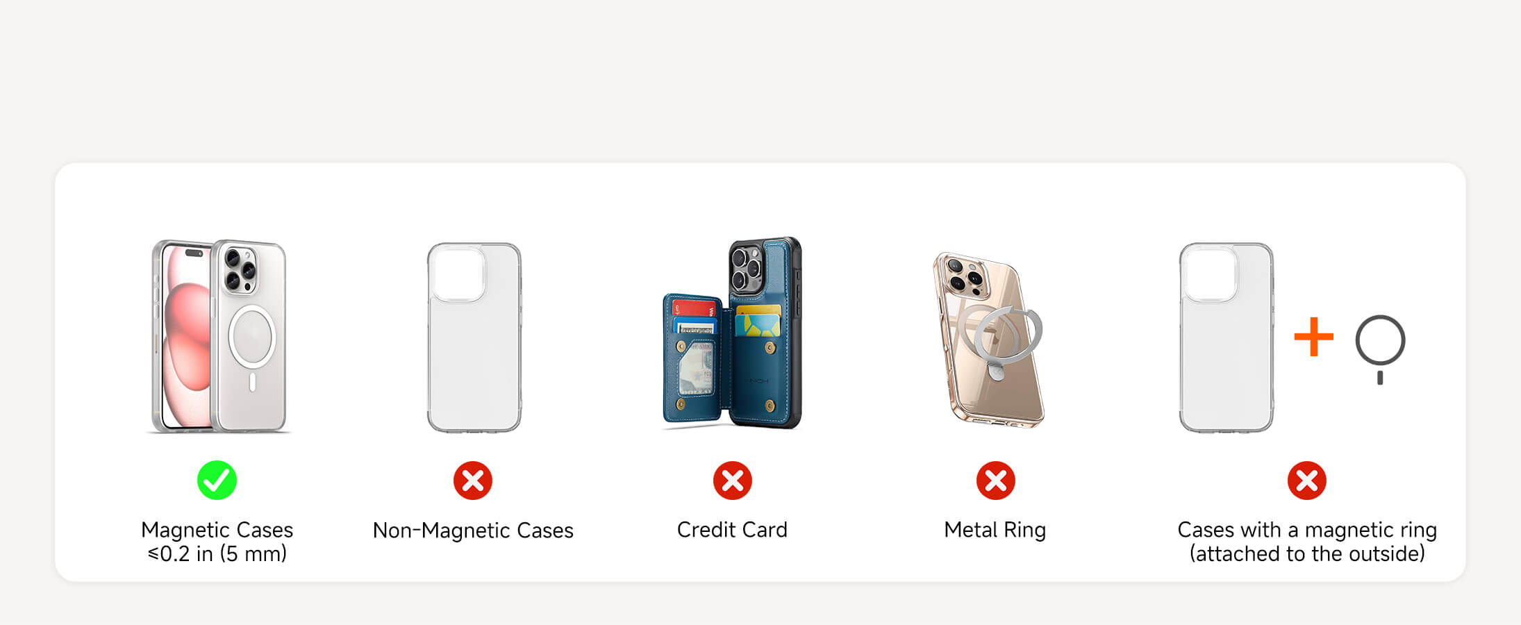 *iPhone 11 / XS / XR / X / سلسلة iPhone 8 (متوافق عند استخدامه مع غطاء MagSafe أو غطاء مغناطيسي)