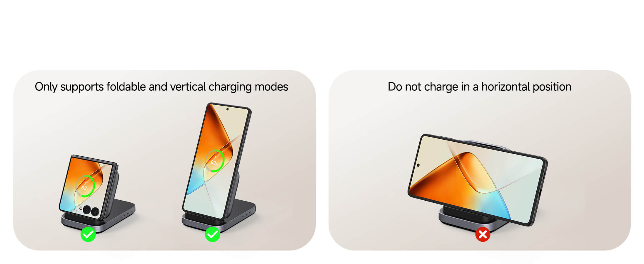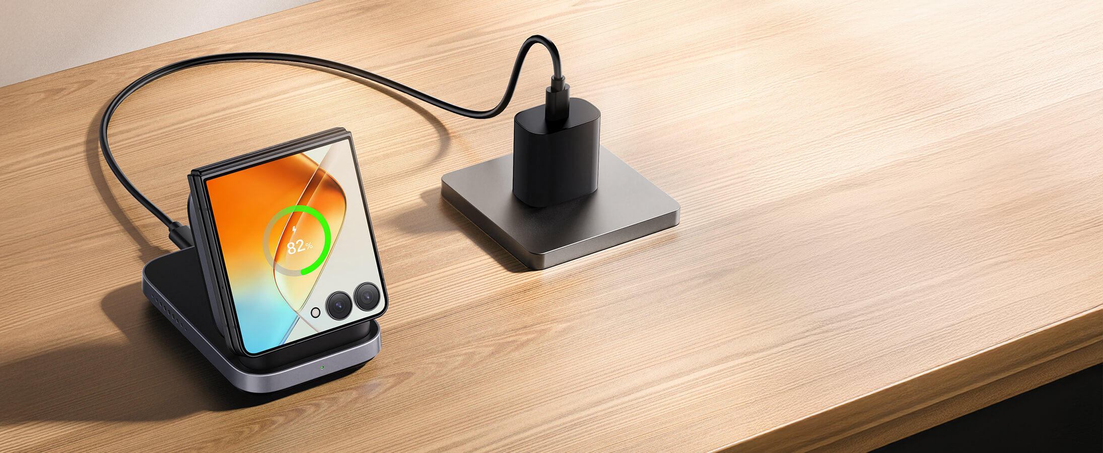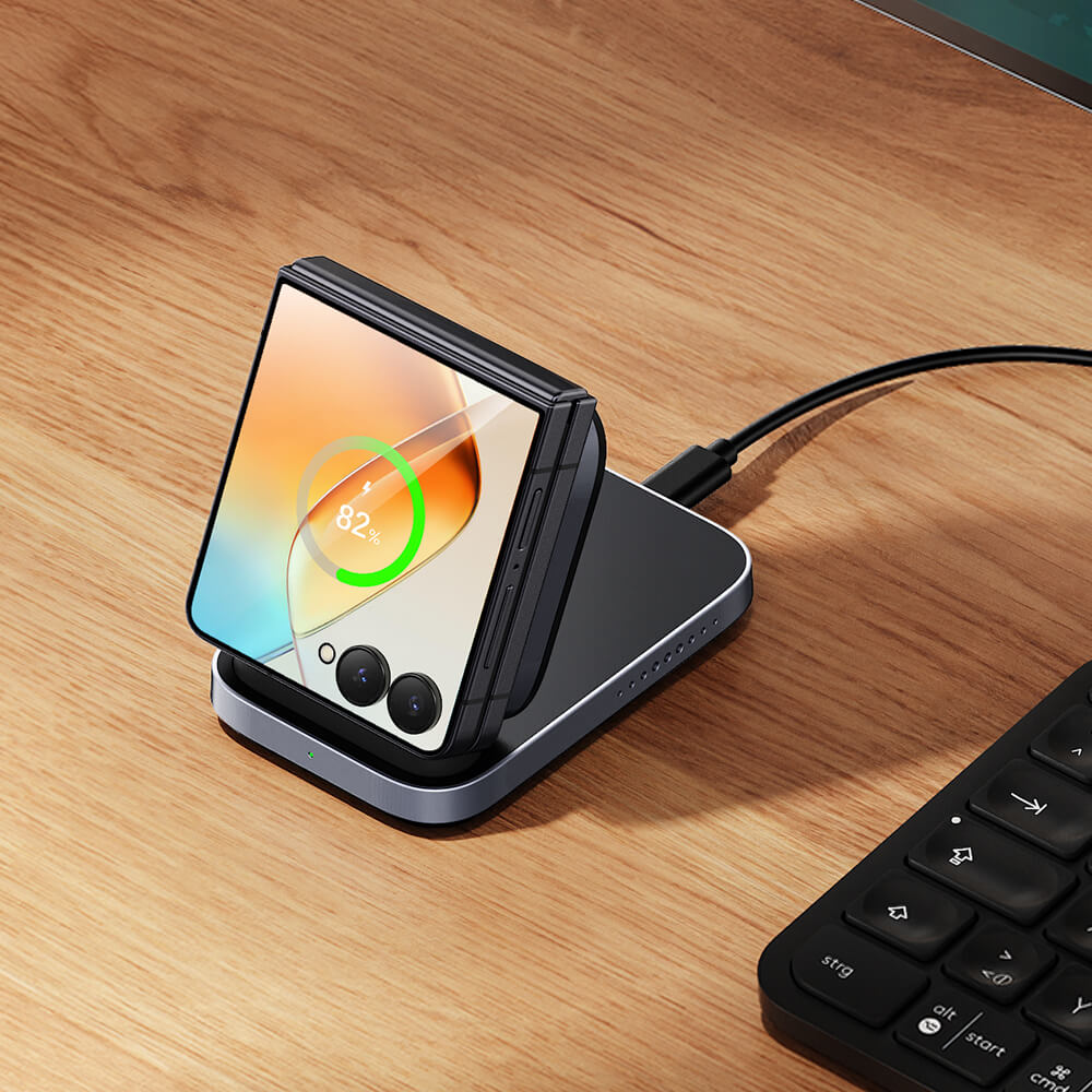 • Experiență de încărcare fără efort: Începe încărcarea instantaneu, fie că telefonul este pliat sau deschis; pentru performanțe optime, este recomandat un adaptor de 18W.