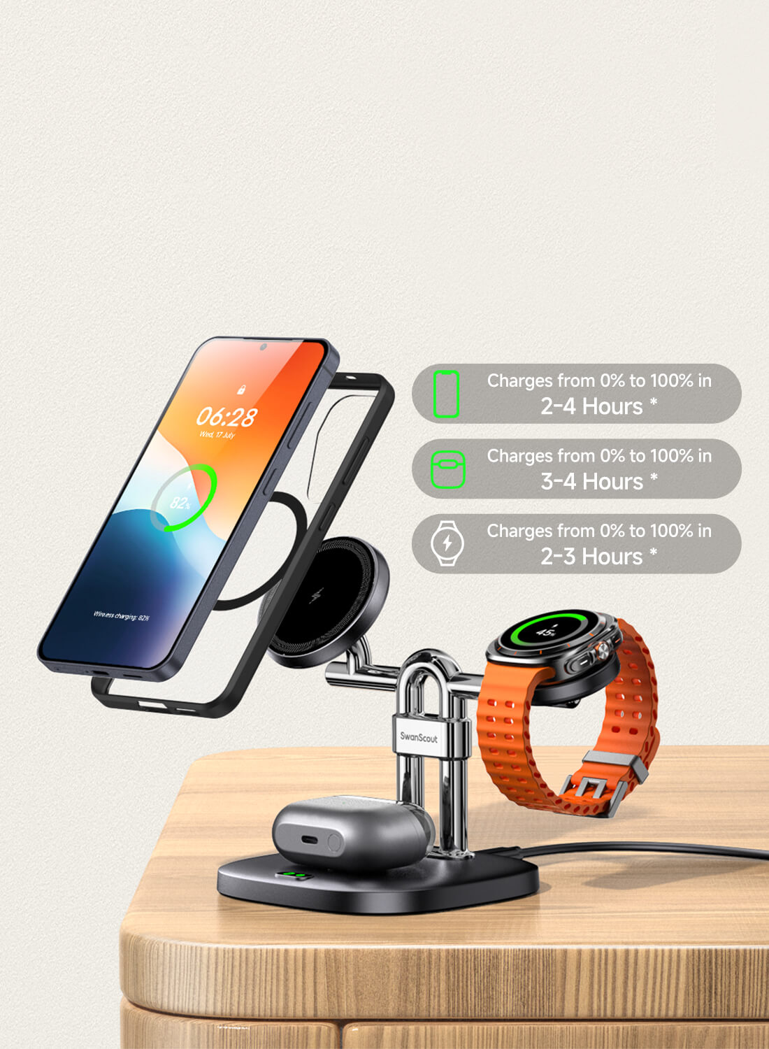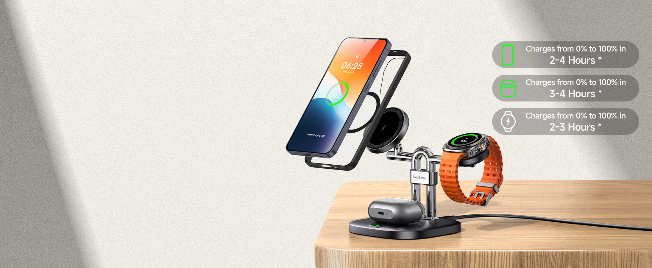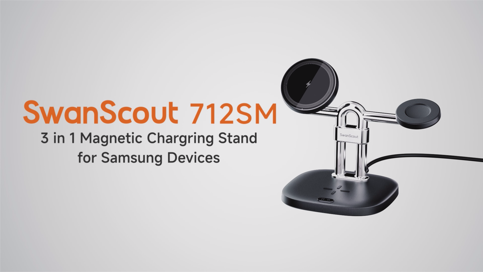 SwanScout 712SM – Stație de încărcare wireless magnetică 3 în 1 pentru Samsung