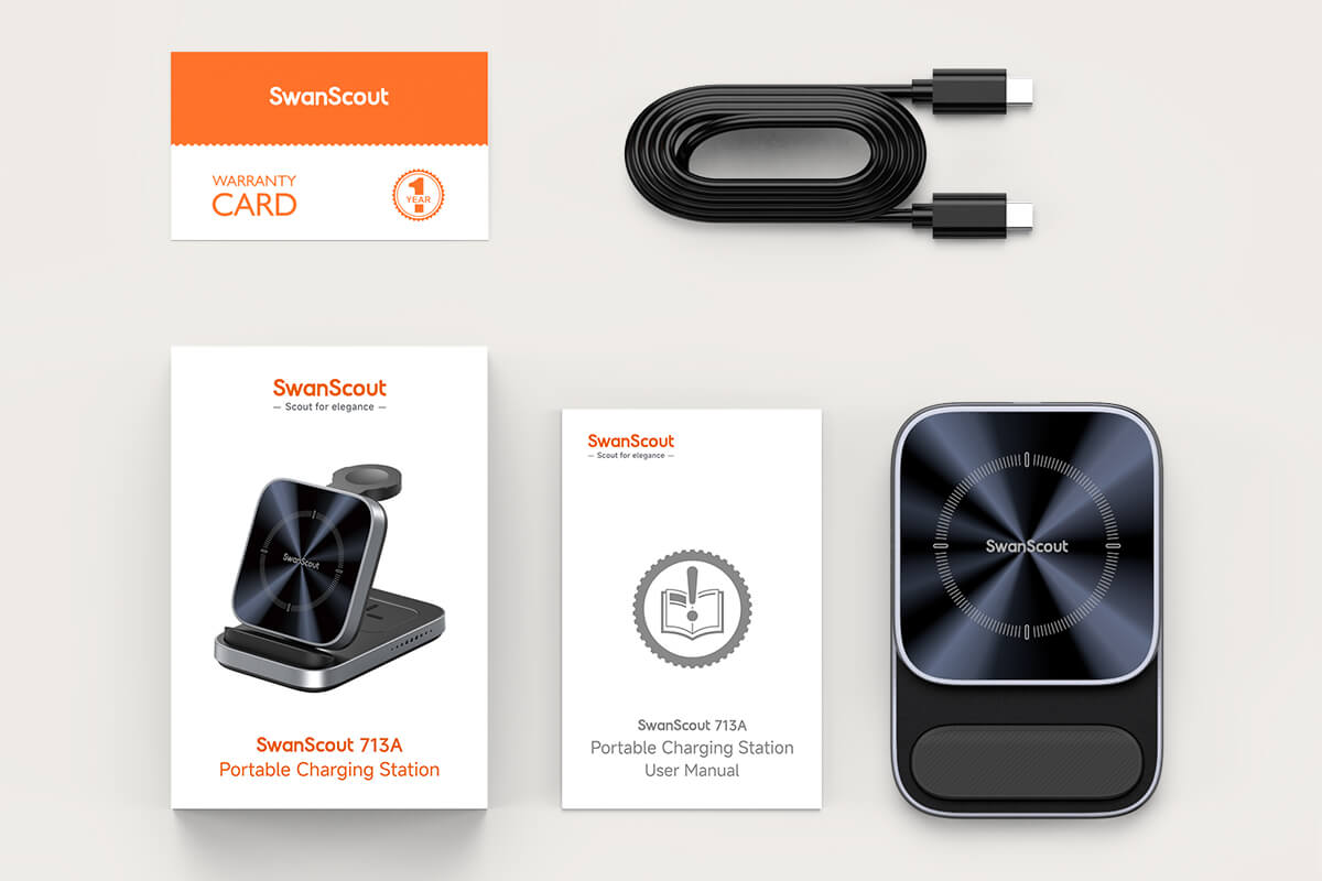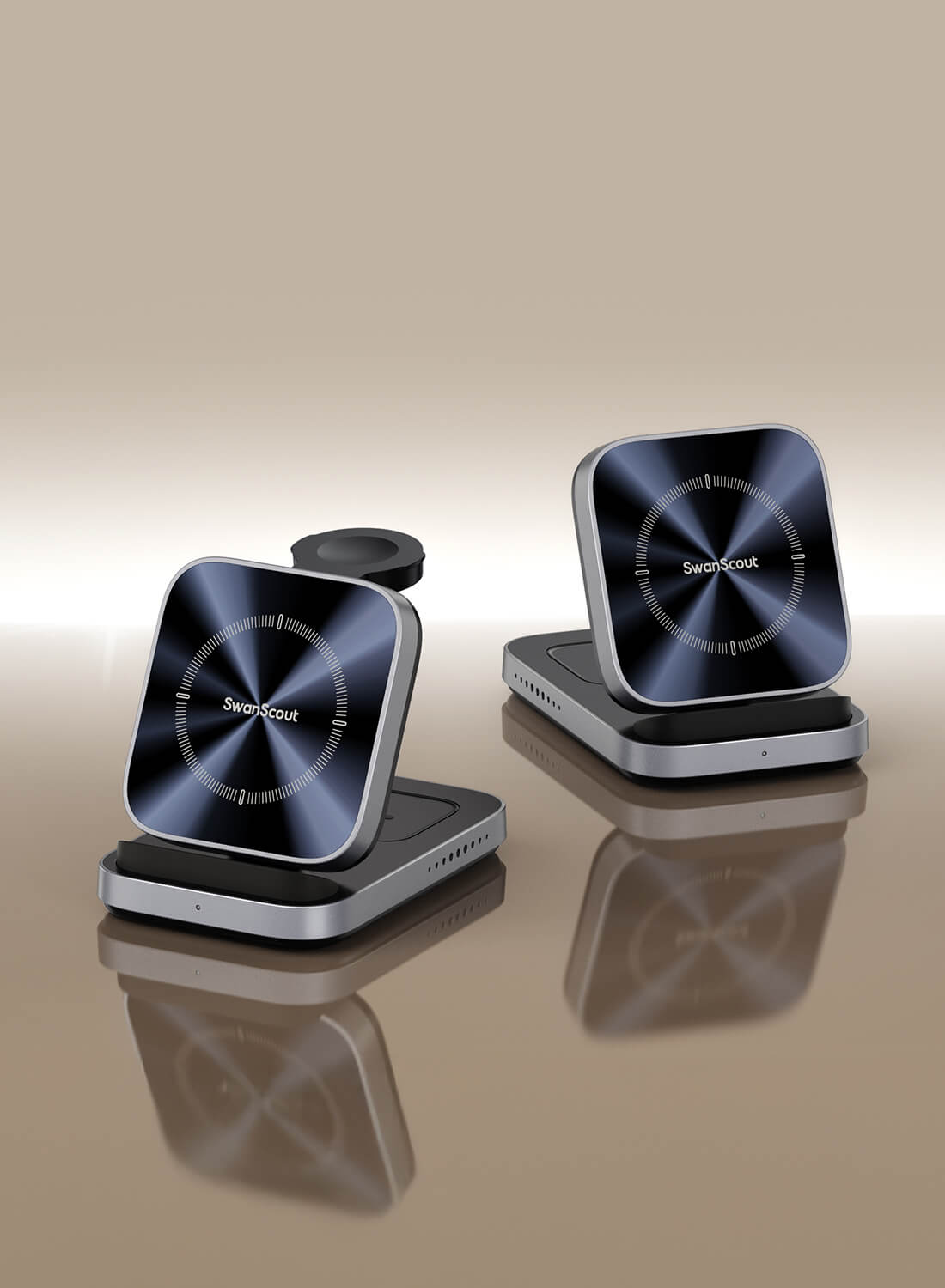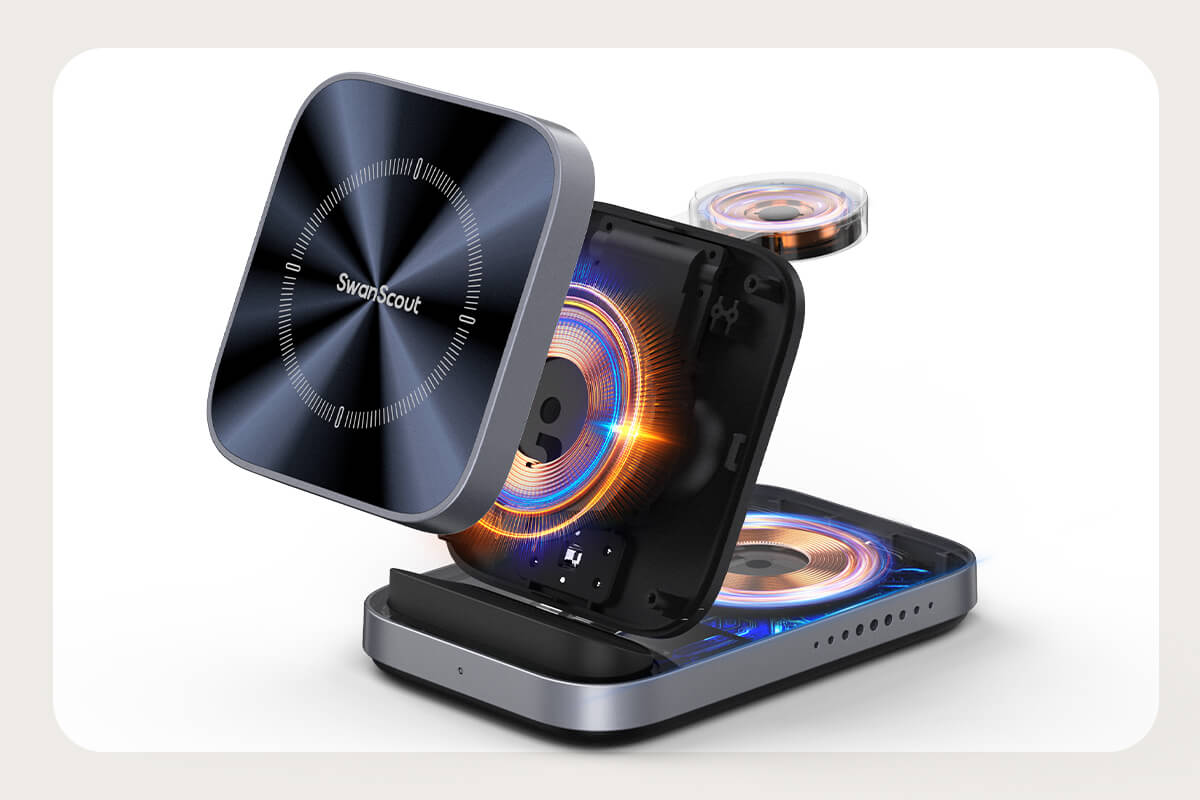 SwanScout 713A - Încărcător wireless pliabil 3-în-1 pentru Apple