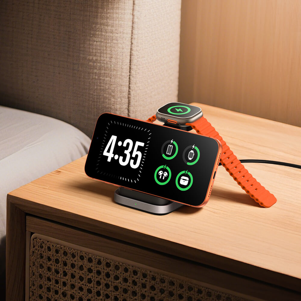 • Încărcare 3-în-1: Încărcați wireless iPhone-ul, AirPods și Apple Watch în același timp.