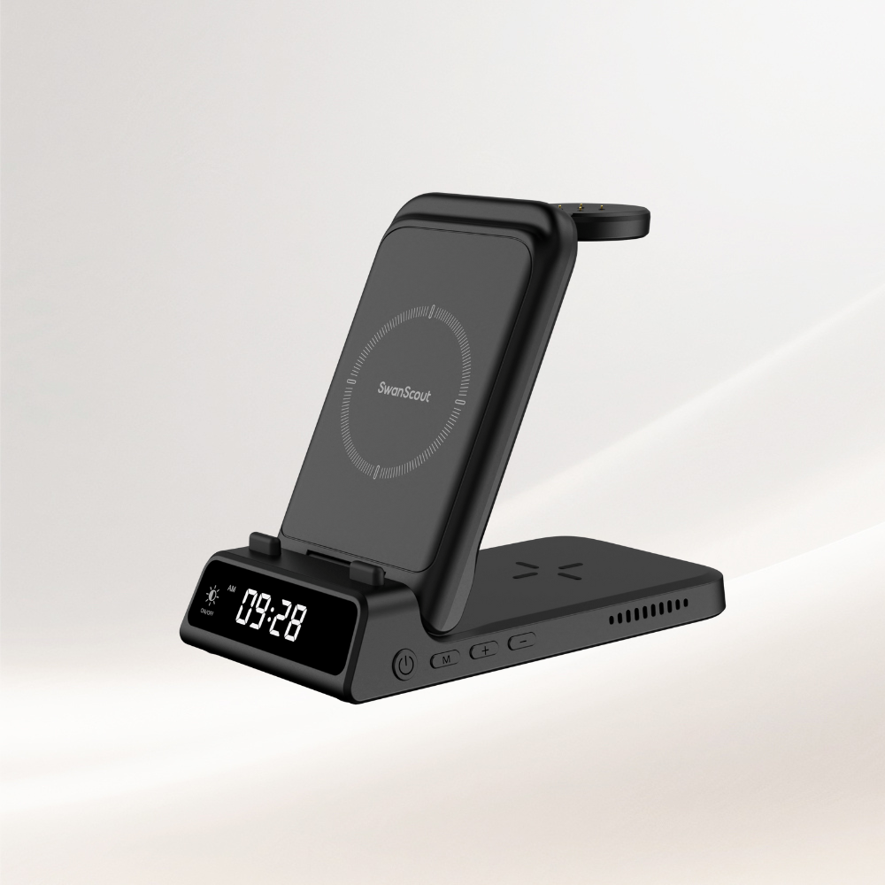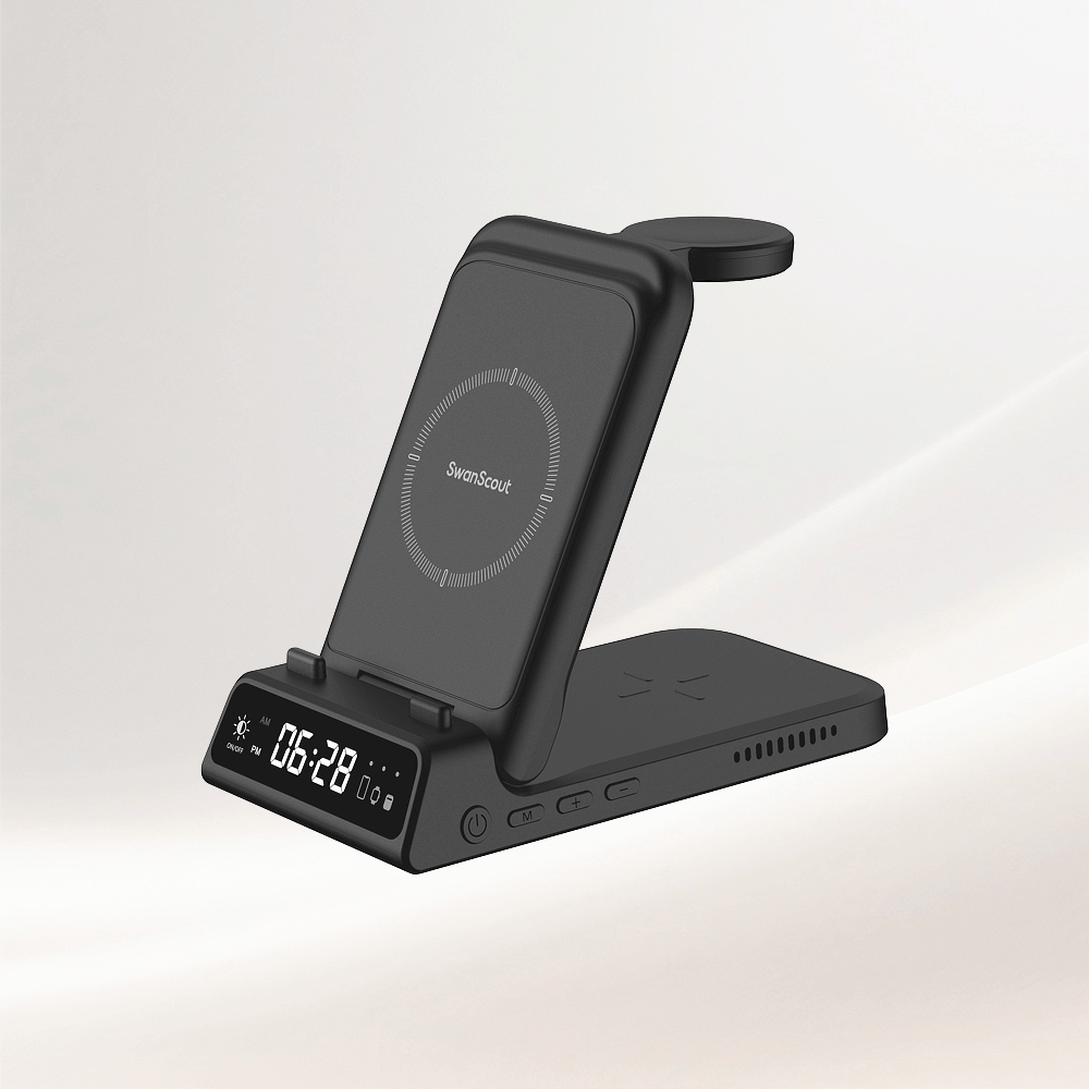 تدعم شواحن SwanScout الهواتف الذكية وسماعات الأذن التي تدعم تقنية Qi من مختلف العلامات التجارية، باستخدام توزيع طاقة ذكي لضبط الطاقة لكل جهاز. أما بالنسبة للساعات الذكية، فقد صُممت وحدة الشحن المخصصة لكل علامة تجارية، مما يضمن دقة المحاذاة والتشغيل الآمن. مع محول PD، توفر شواحن SwanScout طاقة مُحسّنة تصل إلى 15 واط، ما يُوازن بين الأداء السريع وحماية البطارية.