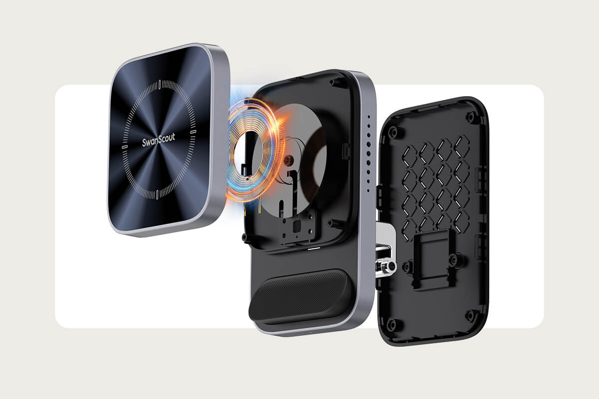 - 通用快速充电: 提供高达15W的无线输出,兼容三星 Galaxy S25/S24/S23 系列、iPhone 17–11 机型以及 Google Pixel 9–6,确保您随时随地稳定高效地充电。